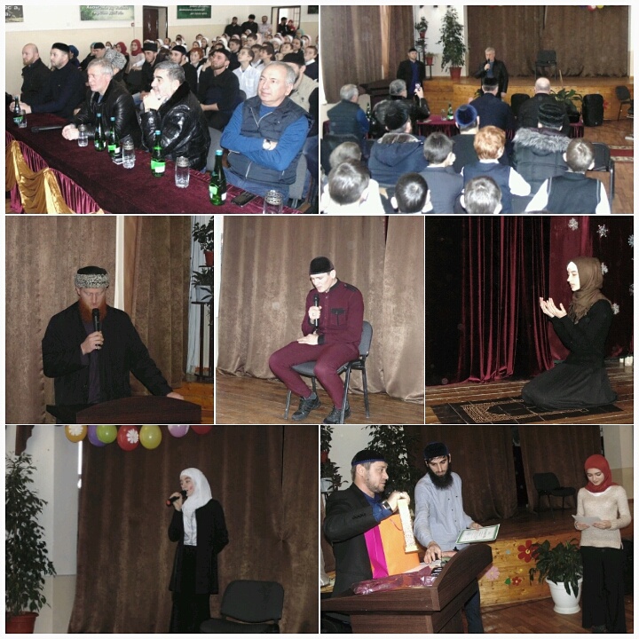 На мероприятие были приглашены почетные гости: Глава администрации Грозненского муниципального района Хасиев Б.С., Глава ОМС с. Побединское Демильханов И.А., начальник ТОП Богатырев Л.З., имам мечети с.Побединское Чалаев В.-Х. Также в числе почетных гостей были преподаватели медресе Икъроъ - Сулимов М. и Лабазанов Р. Организатор и ведущий этого мероприятия педагог дополнительного образования по ДНВ Абдулаев М.Б. рассказал собравшимся о жизни Пророка Мухаммада (с.а.в.), о его характере и поведении во всех жизненных ситуациях.После выступления Абдулаева М.Б. Касумова Ровзан с чувством поведала достоверную историю о жизни Пророка. Затем учащийся Касумов Джабраил прочитал суру из Священного писания «Ат-Тин». Байтаева Марха прочитала стихотворение собственного сочинения «Любимый Пророк». Далее членами кружка «Изучение Корана и намаза» зрителям в зале была представлена сценка – миниатюра «Это не по-нашему», автором которой является педагог дополнительного образования по ДНВ Абдулаев М.Б. Приглашенный хафиз Шидиев Гелаг прочел суру из Корана. Кульминацией мероприятия стало награждение участников, призеров и победителя школьного конкурса «Лучший знаток семейного паспорта Пророка (с.а.в.)». Следует отметить, что родители учащихся приняли самое активное участие в подготовке и проведении конкурса и итогового мероприятия, также в формировании денежного фонда для приобретения подарков и призов всем участникам мероприятия. Таким образом, победительницей конкурса «Лучший знаток семейного паспорта Пророка(с.а.в.)» стала учащаяся 11 класса Батукаева Милана; второе место заняла также учащаяся 11 класса Мусалатова Амина, третье место – учащаяся 10 класса Содулаева Хеда. В завершении мероприятия гости прочитали дуа.