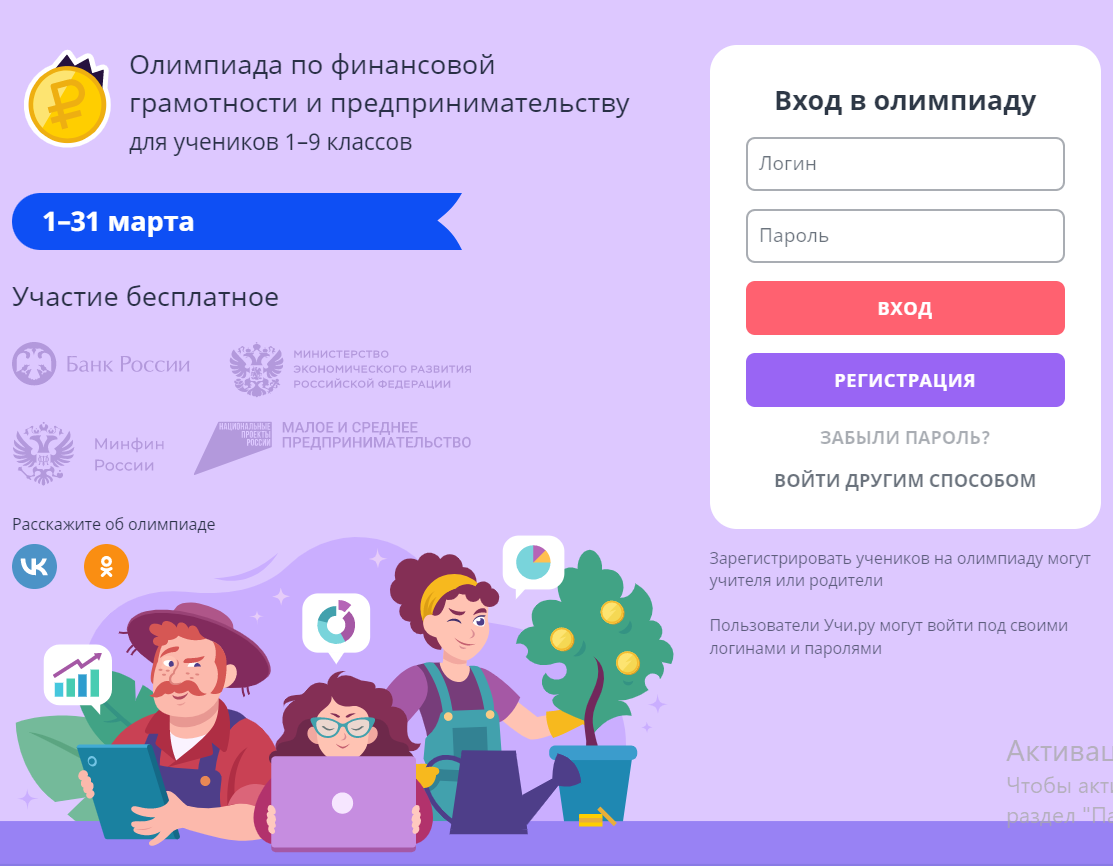 Для участия необходимо зарегистрироваться на сайте finance.uchi.ru или войти с логином и паролем от Учи.ру. Олимпиада завершится 31 марта. Участники и победители получат дипломы, сертификаты и грамоты, которые будут размещены в их личных кабинетах.