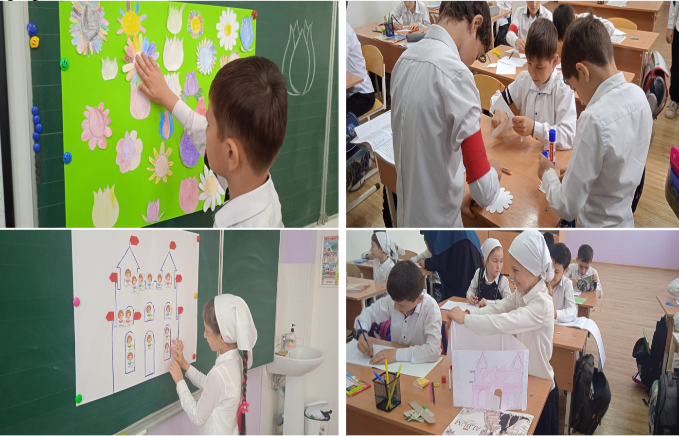 Среди учащихся 1-4 классов были проведены следующие упражнения: «Поздоровайся по-волшебному», «Вверх по горам», «Рисунок в технике