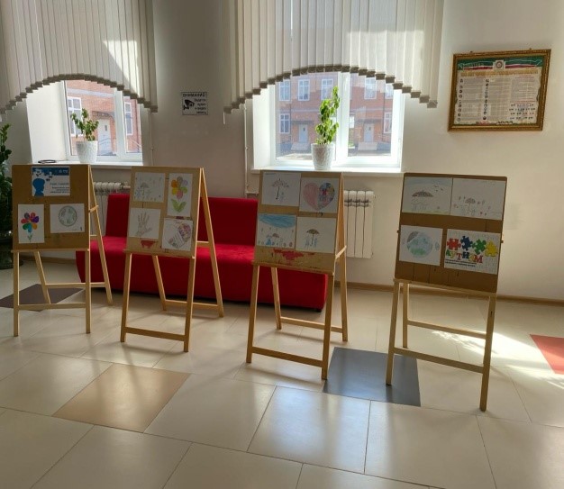 Была проведена выставка рисунков «Мир один на всех» и книжная выставка« Мы разные, но мы вместе».