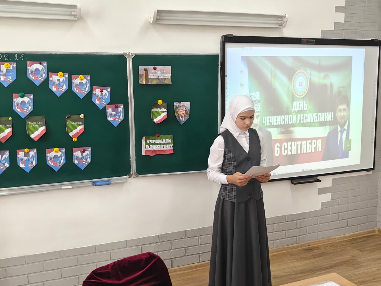 Продолжатель дела своего отца, Глава Чеченской Республики, Герой России Рамзан Ахматович Кадыров в кратчайшие сроки сумел восстановить родной край и превратить его в один из наиболее успешных и стабильных регионов страны.8 сентября 2025 года в МБОУ Побединская СОШ прошла торжественная линейка, приуроченная к "Дню гражданского согласия, единения и примирения". Были проведены классным часы, беседы о подвиге первого президента Чеченской республики, героя России Ахмата - Хаджи Кадырова. Были ярко, красочно оформлены доски. Дети читали стихотворения про свою Родину, столицу ЧР.